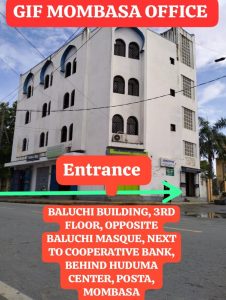 3RD Floor – Opposite BALUCHI MOSQUE, next to COOPERATIVE BANK, BEHIND HUDUMA CENTER, POSTA, MOMBASA.